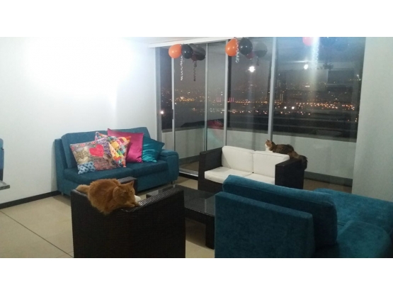 Cuenta con 3 habitaciones, 2 baños, sala comedor, cocina integral completa con barra grande, amplia y acogedor balcón con linda vida hacia el rodeo, parqueadero doble lineal y cuarto util.